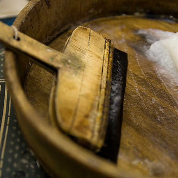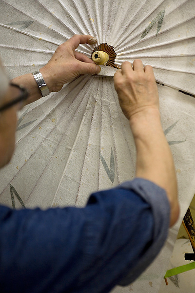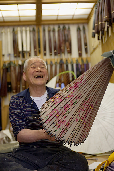 Hiroshi Matsuda - the sole heir for the Kanazawa Wagasa is positive and has never sunk in sorrow about it, he just works cheerfully. He truly loves his job and really enjoys making the umbrellas. He was born in Kanazawa in 1924 and started to follow his father as his boss when he was 12.