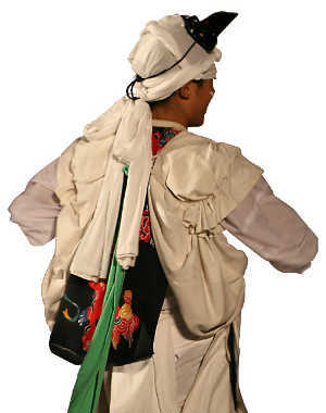 Yoh-ko (shoulder drums), binzasara (bamboo whisks) and doh-byo-shi (cymbals) are not just instruments but also parts of costumes. I have no idea if people of old times put those costumes on for Dengaku. However you'll at least see something from the Heian Period in the costume. The mysterious Dengaku dance is considered to be created in the age.