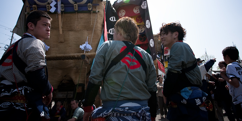 The district crest of Uomachi has two lines in the circle, while that of Fuchumachi’s has three comma-shaped symbols. Kajimachi has a Chinese Kanji character which is pronounced as “Yama” and means mountain. The festival has a history of more than a thousand years. The local people are proud of it, and also proud of themselves to be from such a great area. They have been seeing the festival since they were kids, and they’ve grown up hoping to someday participate in the legendary event. "Look at them! I will do that soon, mom!" Even people who have moved away often come back for the festival. Older people have somewhat of a career about with the floats. As one gets older, they receive more respect in the districts.