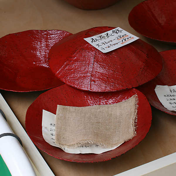 I also want to recommend you lacquered table ware made of “cloth.” They are light and also water-resistant, so are much easier for maintenance comparing with wooden ones. Wooden lacquer ware are sensitive as you know. As far as I am concerned, I especially prefer this bright-red plate. I confess that I am not a great cook. Whenever I cooked and served the dishes on those lovely plates, luckily I feel like a professional chef who can create 5-star meals!