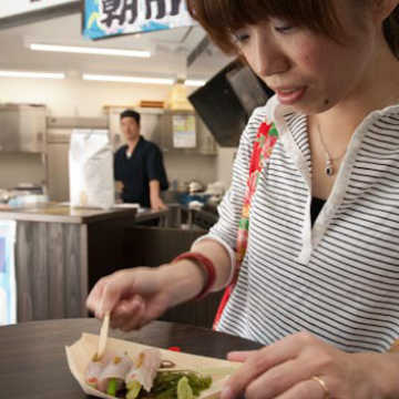 “Asaichi Sakaba” has been open since March 25th, 2012. Its specialty is the fresh sashimi (raw fish). When people usually come to Wajima morning market, most people would get the fresh seafood to take them home. Although foreign tourists can't do that, this bar offers you another wonderful option. They will definitely satisfy your sashimi craving. Therefore visiting this sashimi bar is a good idea for tourists to easily try fresh raw fish as a snack.
