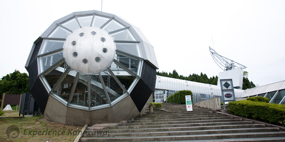 By the time you reach Notojima Island you will have already had plenty of time to take in the scenic countryside along the way, and the views of the bay and the peninsula from the large bridge. And although the beauty of it is undeniable, it’s only natural for you to expect to see more of the same as you go. Compared with the mainland, Notojima Island has even fewer buildings and most of them are traditional homes, so nothing in the surrounding environment prepares you for what you come upon next: your eyes are drawn by the glint of metal and glass on the large hill to the left. It takes a moment to understand exactly what it is you’re seeing. Like some half buried starship rising from the ground, or an extra-planetary research facility from a science fiction movie, it leaves you with two questions: What is this place! And what in the world is it doing in the middle of the Japanese countryside?