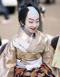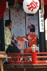 The Ataka-no-Seki in those plays truly existed by the ocean in the city. It's no wonder that Komatsu people love Kabuki. The Otabi Matsuri festival originated from a prayer to God for peace in 1651. Kids' Kabuki has a history of 240 years. Through in the past it was only open to boys to perform the fabulous play! Ryusuke-Cho, Nishi-Cho, Kyo-Machi, Naka-Machi, Tera-Machi, Yohkaichi-Machi, Daimonji-Cho, and Zaimoku-Cho have floats. Two of the eight districts perform every year. This year it was Kyo-Machi and Daimonji-Cho's turn, and I watched "Otoko-no-Hanamichi" in Kyo-Machi.