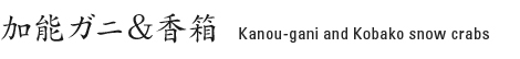 Male snow crabs caught in Ishikawa prefecture are named "Kanou-gani." Conversely, we have called the female crabs "kobako (flavor box)" since olden times.