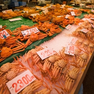 Prices depend on the size and weight. Zuwai-gani is well-known as a high-grade crab, because of its excellent taste. They live at a depth of around 200 - 400 meters, and the water temperature is about 1-3 degrees Centigrade. As a result, the crab meat is thick and tasty. Usually it takes 10 years for a male crab to reach an excess of one kilogram in weight, and for the width of the abdomen to be 12-15 cm, with the full length of the crab between 70-80 cm. The price of a female crab is more affordable of course, simply due to their smaller size.