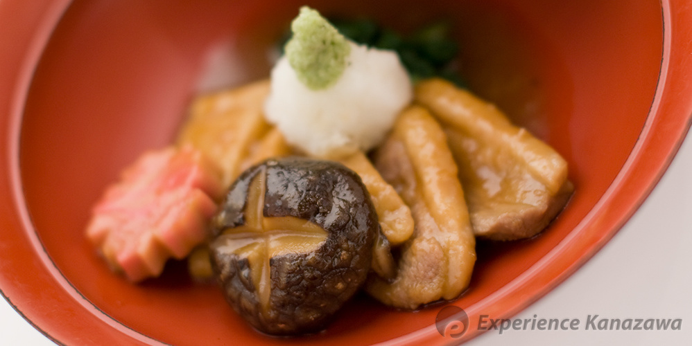 When you travel to other cities, you definitely expect to find a local food that can only be eaten in the region, right? Well, let me introduce some local dishes in order for you not to be at a loss in the restaurant. Kaga-ryori is an original cuisine which utilizes seafood, vegetables, and ingredients from the local Kanazawa area. Jibuni, Hasumushi and gori-karaage are three popular Kaga-ryori dishes. These dishes are usually served on colorful Kutani porcelain, or lacquerware made in Ishikawa, and taste as excellent as they look!