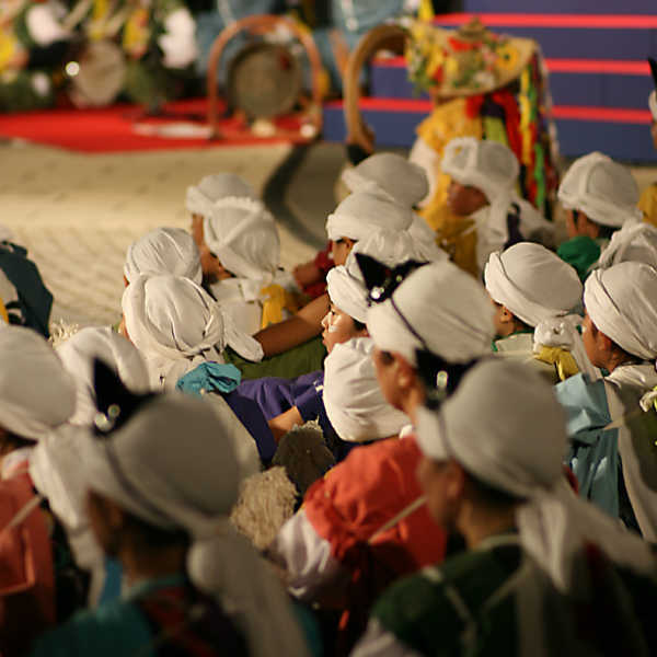 We have a Bon festival dance anywhere in Japan, but sadly most of the music don't interest the youth in modern times. Daidengaku music is different. It's fun, quick and rhythmical. There is something to enhance people's feeling in the rhythm, and something to let them set free. When I first saw the dance, it reminded me Bollywood movies. Indian people have passion for dance as you know. The choreography with basic steps doesn't look so difficult, like hop and hop. However some acrobatic movements and juggling are also taken in. Let's leave the parts to the Yamashiro dancers and enjoy watching them!