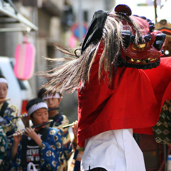 A big boy beats a drum, little kids play flutes, and the lion shows a dance to drive evil away. I was impressed to see so many children in the districts. Has the birth rate in Japan increased recently?
