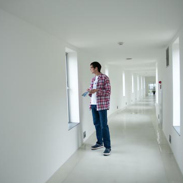 From here I backtracked to a hall jutting off to the left a short way up the corridor. This next hallway has a more angular feel and features large windows above and to the sides with the ceiling and walls at odd angles that make you feel like you’re tipping over. Not to worry, there’s a wooden lacquered handrail to help you keep your balance. Today, I learned for the first time that this handrail was designed specifically to incorporate lacquer-ware into the museum as it is one of the traditional crafts Ishikawa prefecture is famous for. A nice touch, that.