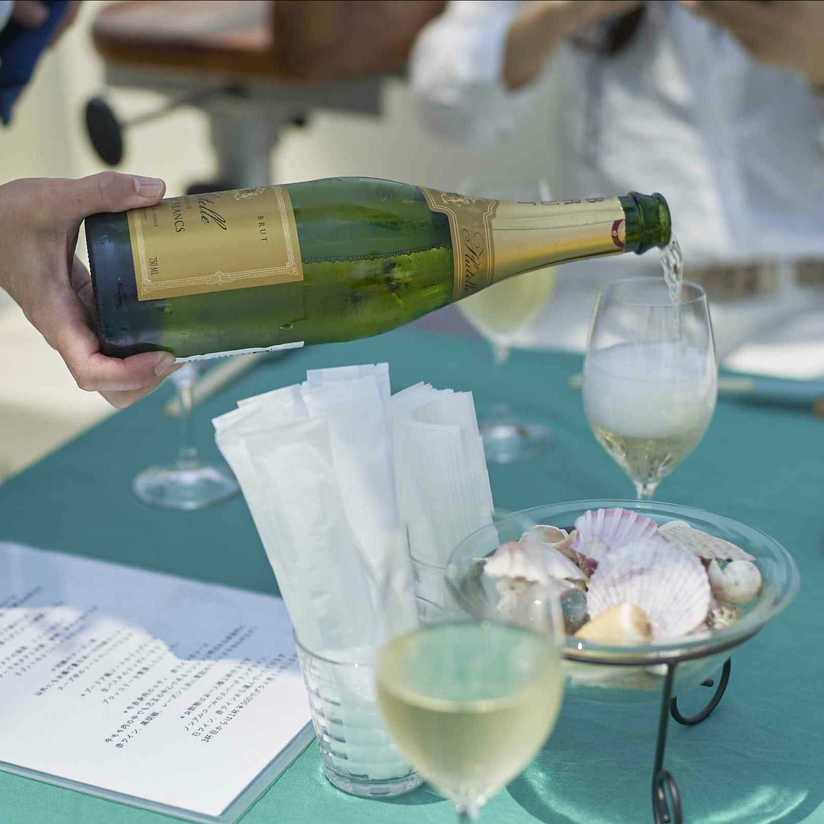 Captain Roki, who directs NSA, was preparing to sail around the inlet for us when we arrived at the cafe before 10 am. It’s a two-hour drive from Kanazawa City via the limited-access highway “Noto Satoyama Kaido.” We then began taking our stuff onto the catamaran.
