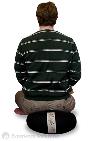 When doing zazen at Daijoji, there are two positions to choose from: the full-lotus position or the half-lotus position. The former is very hard for beginners to do, and almost impossible for most first timers, so I recommend the half-lotus position, in which you place your left foot on your right thigh.Once seated, cup you left hand in your right, with your thumbs touching each other (“hokkaijoin”).